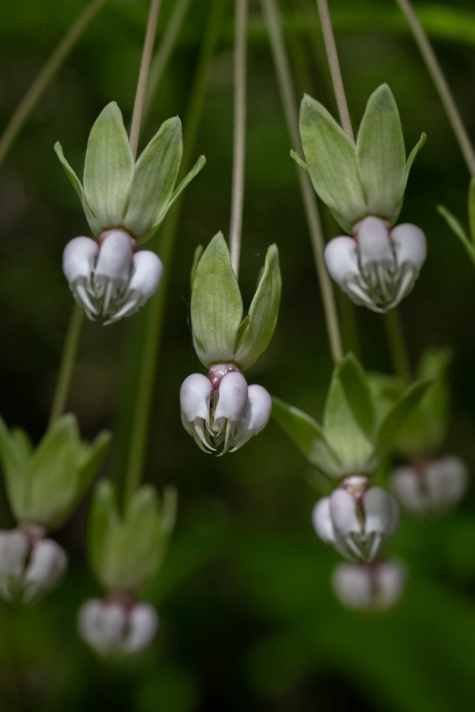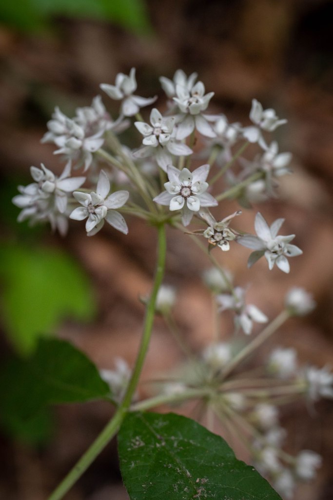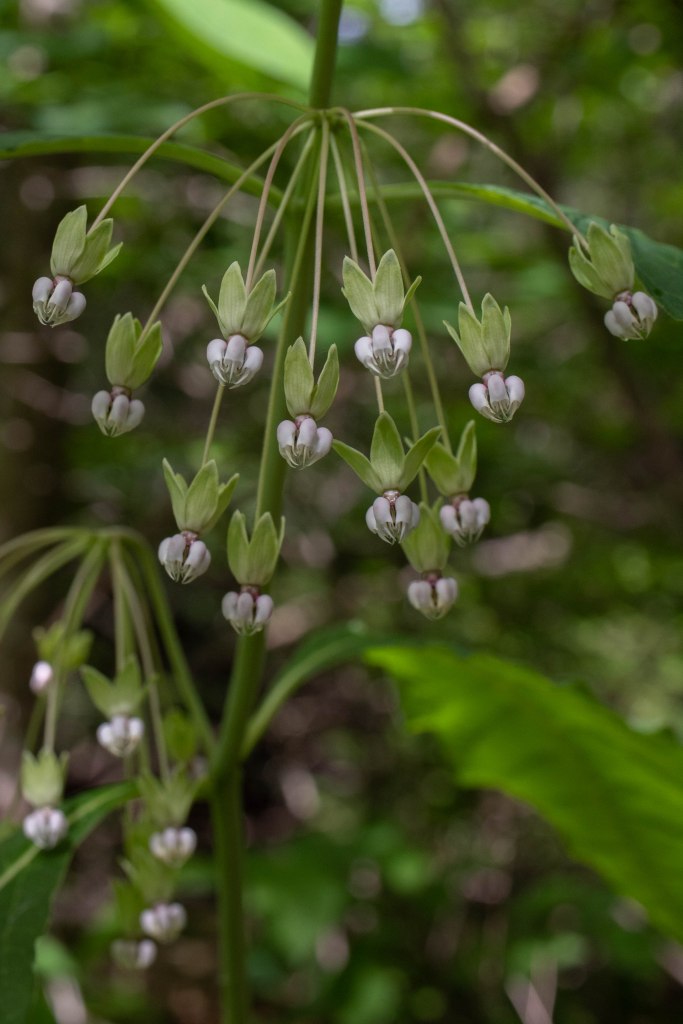Four-leaved Milkweed (Asclepias quadrifolia) is easily distinguished from other species of Milkweed by its whorls of 4 leaves. Unlike Common and Swamp Milkweed, these plants occur in shady forests. They also have a pleasant scent. Interestingly, four-leaved Milkweed occurs throughout the eastern US except it does not occur in the Mississippi river valley, giving it a disjunct distribution (8).