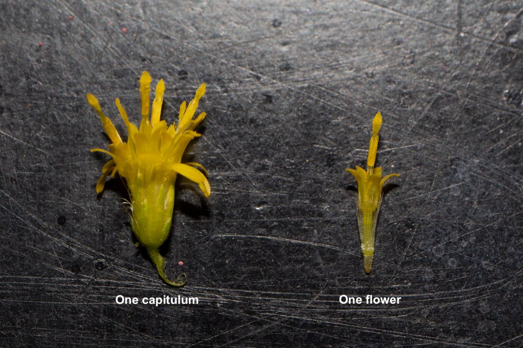 Fall is in full swing and as the growing season winds to a close, one group of plants is still producing flowers and providing a last meal for pollinators preparing for winter. Many of the plants that bloom in the midwest this time of year belong to the sunflower family, Asteraceae. This plant family is extremely successful, containing over 23,000 species, the most species of any plant family (1). One reason this family is so successful may be due to the type of inflorescence these plants have – the capitulum.