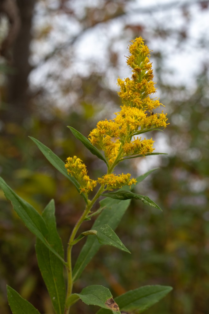 Florists sometimes sell goldenrod flowers under the name of their genus, “Solidago”, which is much more posh sounding. This is probably because many associate goldenrods with weediness and hay fever. Although many people overlook goldenrods as weeds, pollinators and other fauna rely on these plants as a late season food source. Insects may use the stems or leaves as places to lay their eggs forming round stem galls or odd poofy leaf galls. Birds can easily spot galls and peck into them for a tasty snack of larvae, or just eat the goldenrod seeds. On the whole, goldenrods are great contributors to their habitat and are very nice to look at so make sure to go out and admire them while you can.